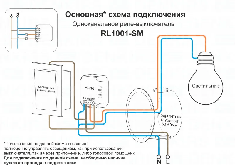 Wi-Fi реле-выключатель одноканальное Denkirs 1x2300Вт/250Вт для LED RL1001-SM купить в Реутове по лучшей цене