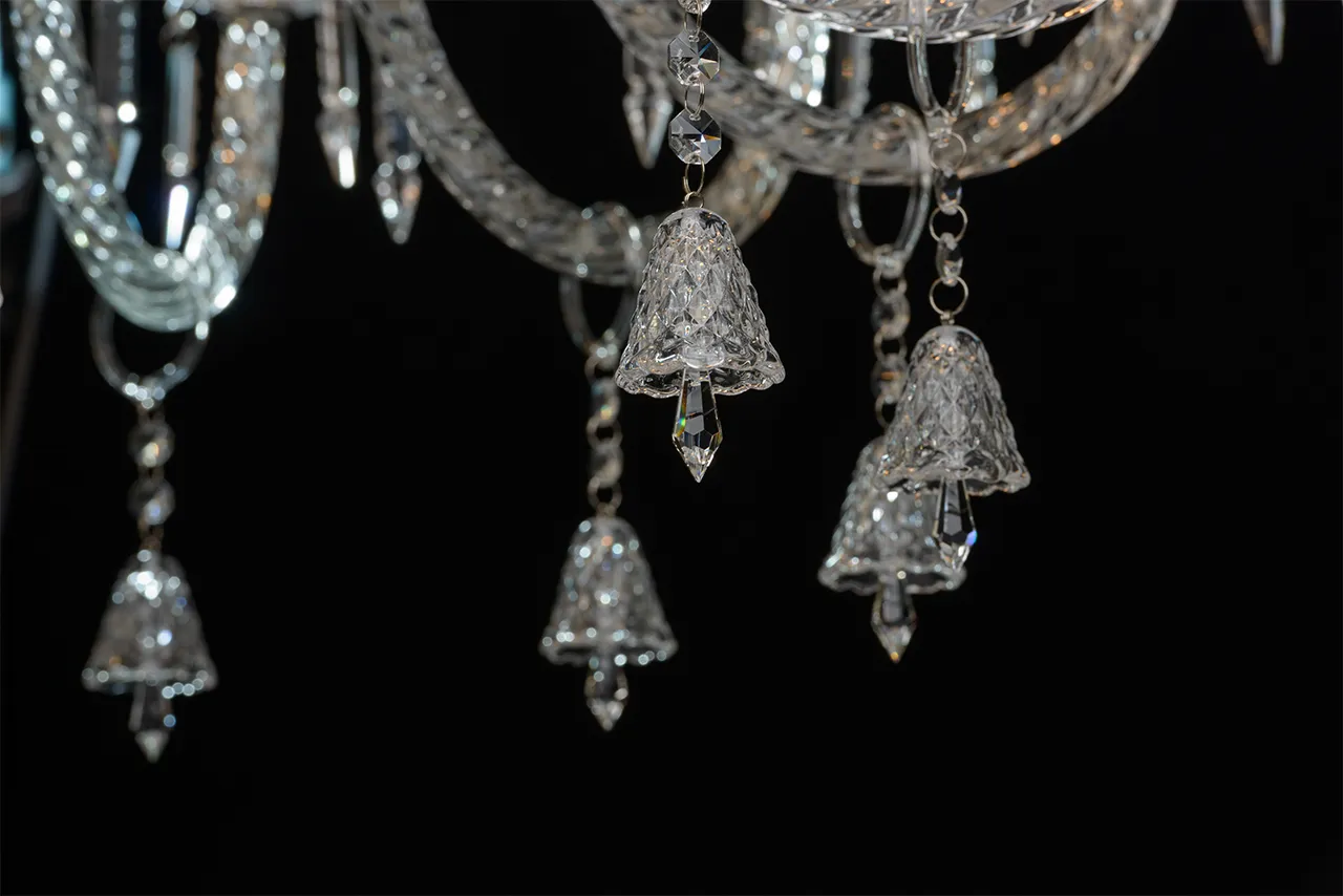 Металлическое основание цвета хрома, декоративные элементы из стекла и прозрачного хрусталя